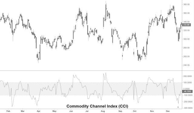 - CCI es un indicador ilimitado, lo que significa que puede subir o bajar indefinidamente. Por esta razón, los niveles de sobrecompra y sobreventa generalmente se determinan para cada activo individual al observar los niveles históricos extremos de CCI desde donde se invirtió el precio.